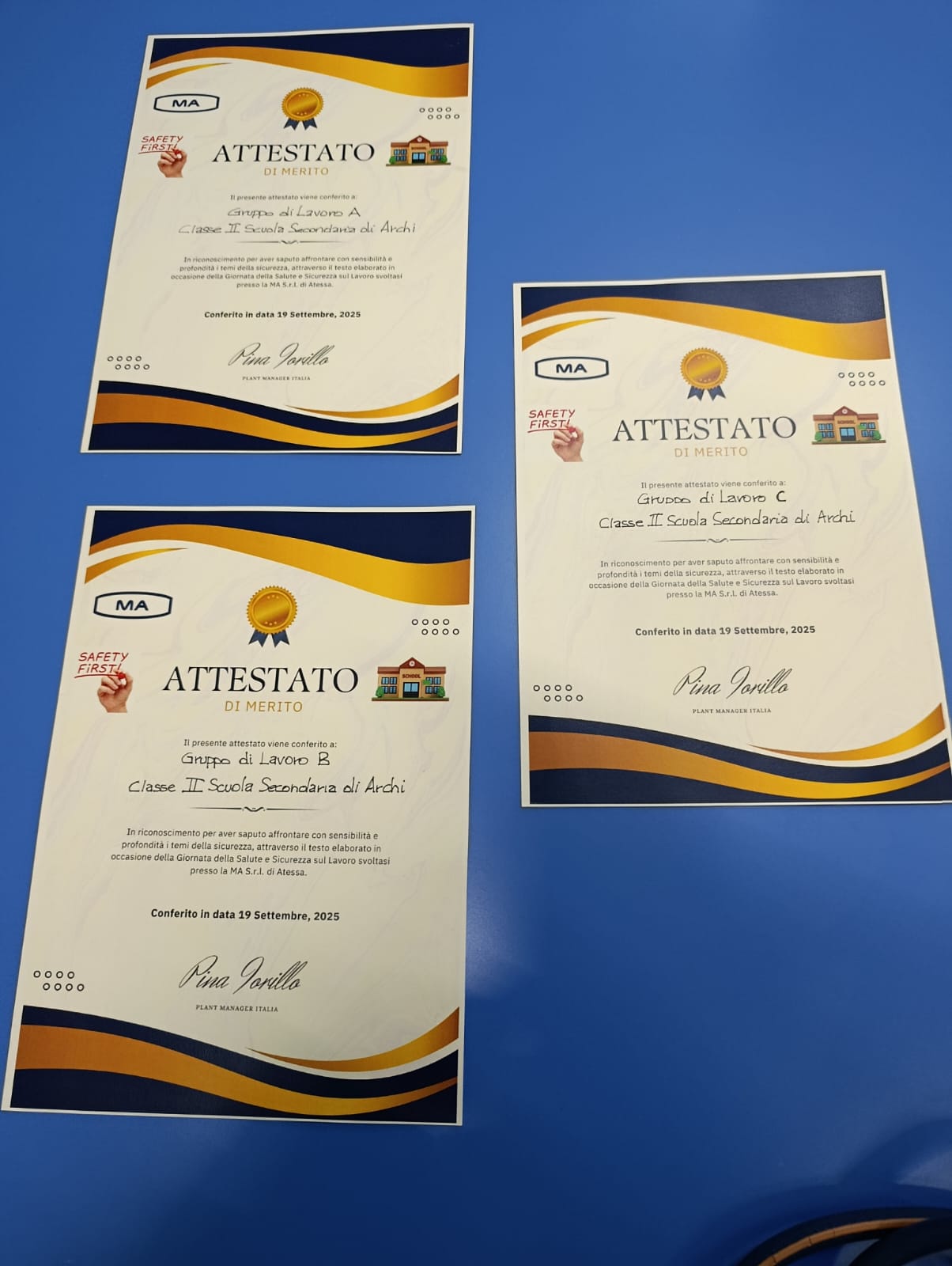 quattro storie di emergenza in cui i protagonisti sanno come bisogna agire (qual è l'attimo decisivo), le analogie tra sicurezza a scuola e sicurezza in azienda e, infine,(facendo un viaggio nella storia) il dramma di Marcinelle. I ragazzi, con attenzione, hanno esposto i loro lavori nel corso della manifestazione, ricevendo un attestato di merito.