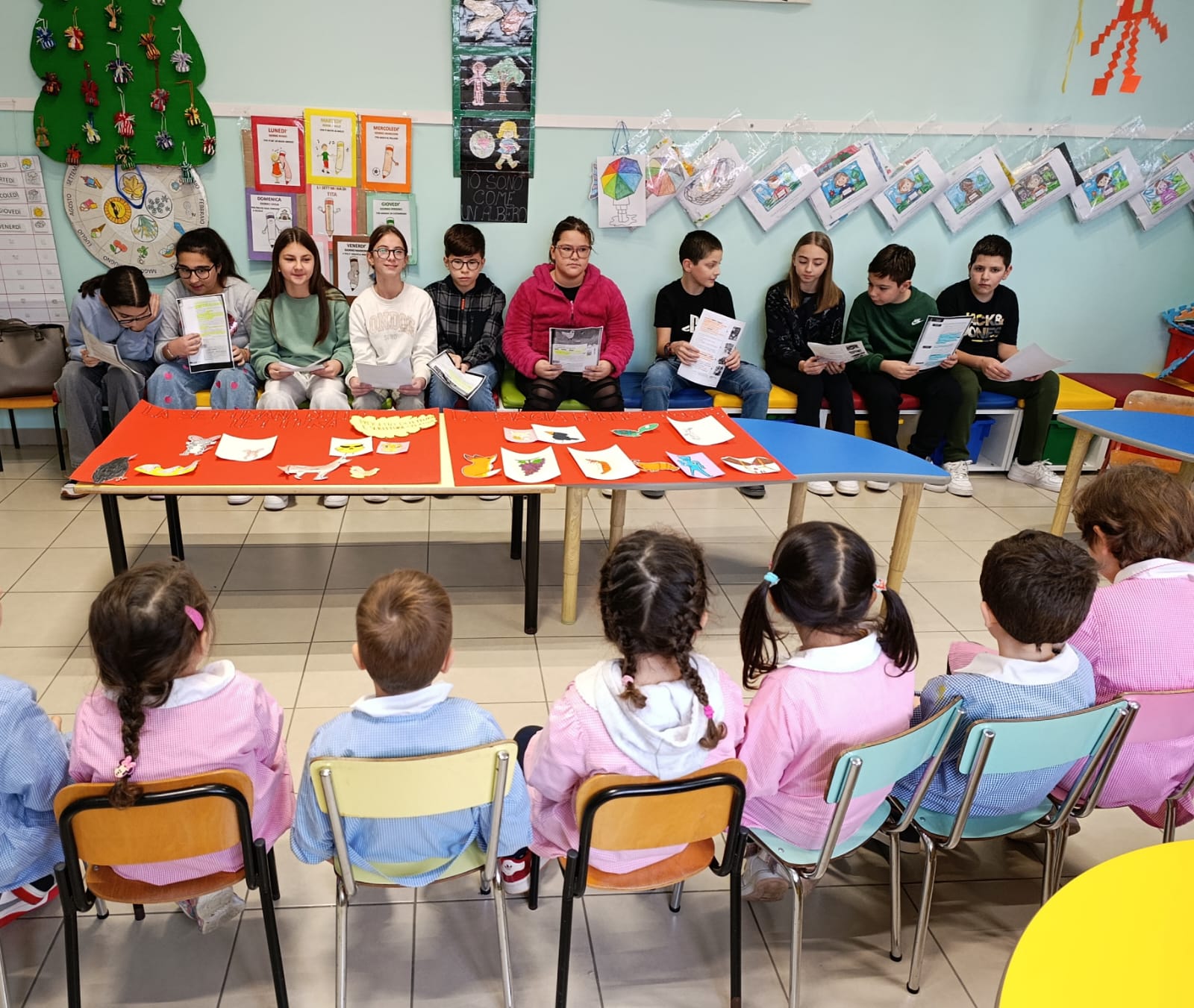 È stato un incontro in cui, se da una parte gli alunni più grandi hanno portato a termine un' attività del Progetto Lettura, nel corso della quale hanno esercitato la capacità espressiva, offrendola poi ai loro ascoltatori, dall'altra l'attenzione e il coinvolgimento sono stati ammirevoli.
