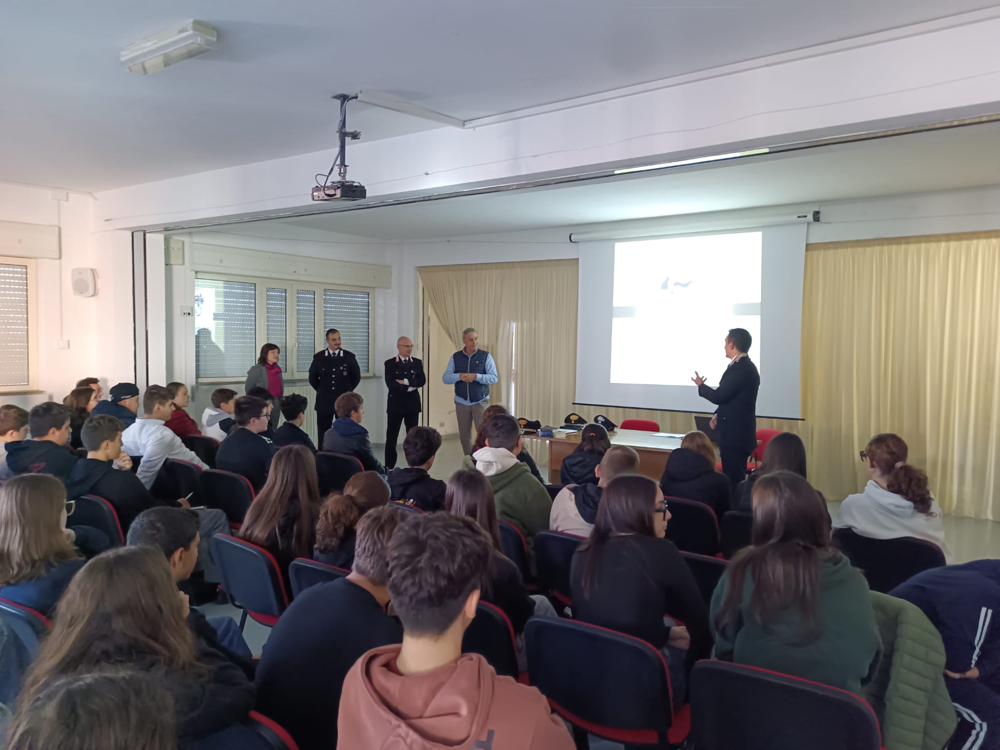 Subito dopo, il maresciallo Luca Menna, della stazione dei Carabinieri di Atessa, ha preso la parola, accompagnato dal carabiniere Giuseppe Giordano. Con slide e materiale multimediale, il maresciallo ha guidato gli studenti attraverso situazioni concrete, racconti e riflessioni, rendendo vividi e comprensibili concetti che spesso appaiono astratti. I ragazzi hanno potuto così vedere, ascoltare e comprendere quanto ogni azione possa avere conseguenze, sia immediate che a lungo termine, e come sia importante valutare il proprio comportamento non solo in termini personali, ma anche in relazione agli altri.